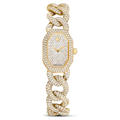 Highlighting Swarovski’s iconic octagon shape and set with 815 crystals, this dazzling watch wears like a piece of fine jewelry. The exquisite case measures 44mm in length with a gold-tone finish and shimmering pavé on the bezel. Its dial radiates light throughout the day thanks to its 192 round-cut crystals and elegant swan logo at 12 o’clock. The watch is worn around the wrist on an adjustable gourmette chain embellished with 530 crystals, while a single crystal is also set within the crown. This Swiss made watch is water resistant to 30 meters and is a spectacular choice for everyday glamour and special occasion opulence.5668854