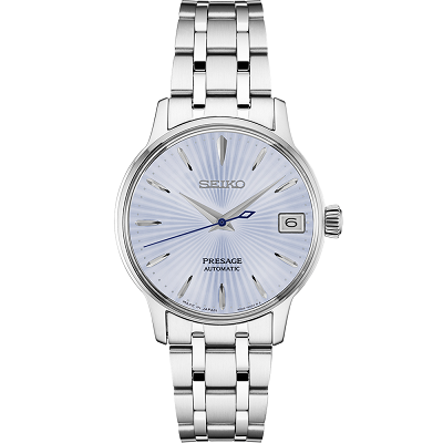 Presage offers ultimate reliability and performance unchanged over the years. This model has a simple and minimalist design and creates a refined look with its light blue dial. This watch, part of the Presage "Cocktail" collection for women, has been designed to offer great femininity in a 33.8 mm case. Made entirely of stainless steel, it has a date display at 3 o'clock.