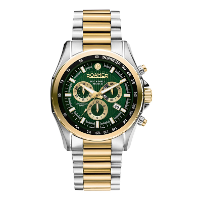 This multifunctional watch combines noble design with reliable functions in Swiss Made quality. Despite an impressive 44 mm diameter. A pinstripe pattern guilloche causes the almost 3 dimensional look of the clearly arranged dial with 3 subsidiary counters and date window at 4 o'clock. The dial comes in various tasteful color compositions and is edged by a smooth tachymeter bezel. Large pips as hour markers and a fluted crown make the Rockshell Mark III Chrono an outstanding timepiece.