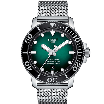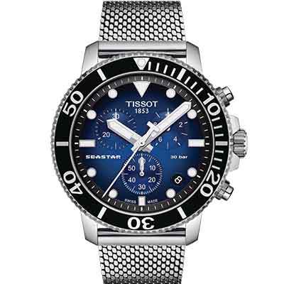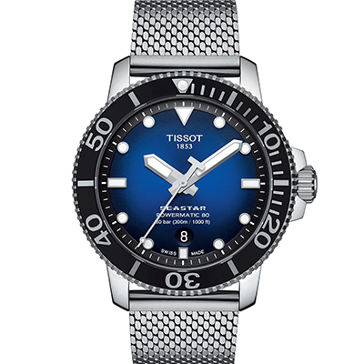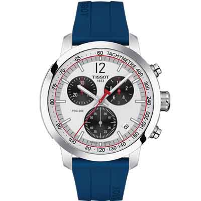 Black silicone strap with inlayed red stitching. Tapered from 28mm (case side) to 24mm (buckle side).