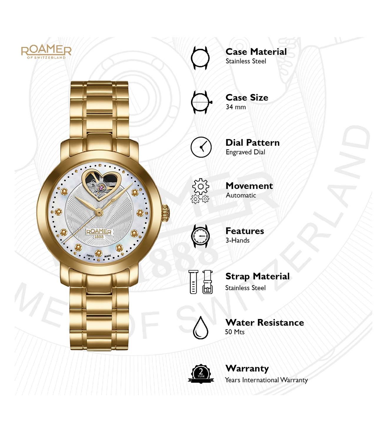This elegant and playful automatic watch has what it takes to become everybody s darling. The Lady Sweetheart features a shimmering dial, heart-shaped skeleton window and 3 central hands. The bottom of the 34 mm stainless steel case is also adorned with a round viewing window. 12 small and 9 larger shimmering dots mark the hours.