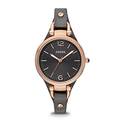 | We love the vintage-inspired details of this gray leather and rose gold-tone stainless steel watch. It's the perfect timepiece to wear day or night. This Georgia watch also features a three hand movement. |