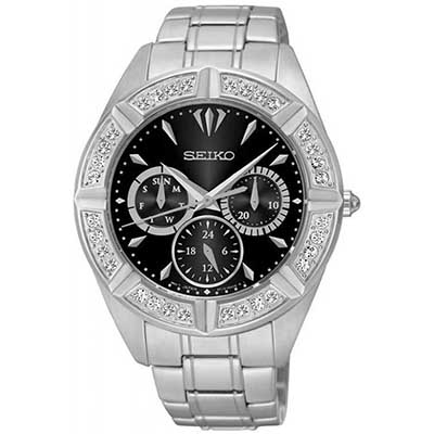Enhance your sense of style by wearing this trendy Seiko analog watch, which is a part of the Lord collection. This watch will stay securely on your wrist, thanks to its silver stainless steel bracelet that sports a robust clasp. Featuring a 37.0 mm black round stainless steel dial with Quartz movement, this watch is an excellent timekeeper. It is also designed with chronograph sub dials that makes it a must-have.