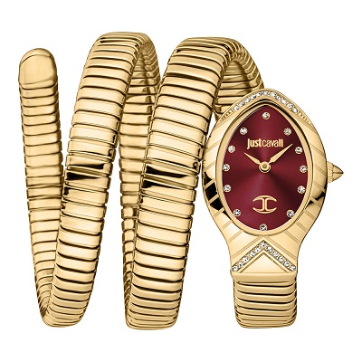 A must-have timepiece for all watch aficionados, this women's analog watch from Just Cavalli will be a perfect pick. Its strap vaunts a gold hue that enhances the look of the watch. Housed in a case, the red oval dial is protected by a mineral glass. It showcases plain 2-hand, and a crown for time adjustment.
